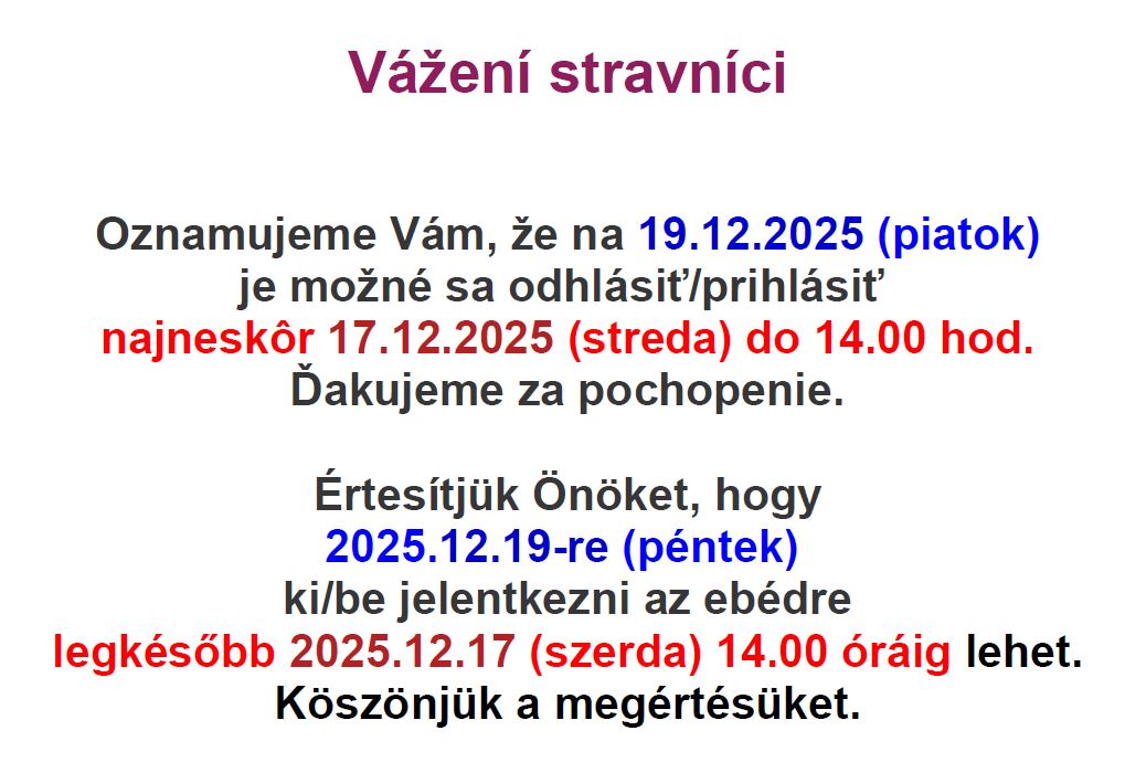 Oznámenie o výške úhrady za stravu od 1.1.2025